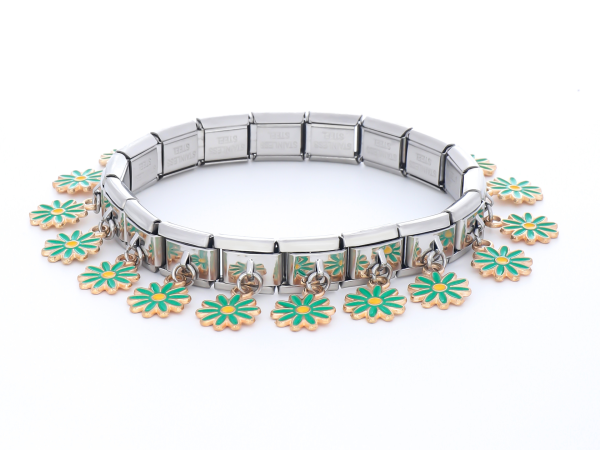 Voit itse suunnitella oman räätälöidyn rannekorun valitsemalla värin tyhjiin linkkeihin ja sitten voit valita oman mielen mukaan erilaisia linkkejä. Hintaan